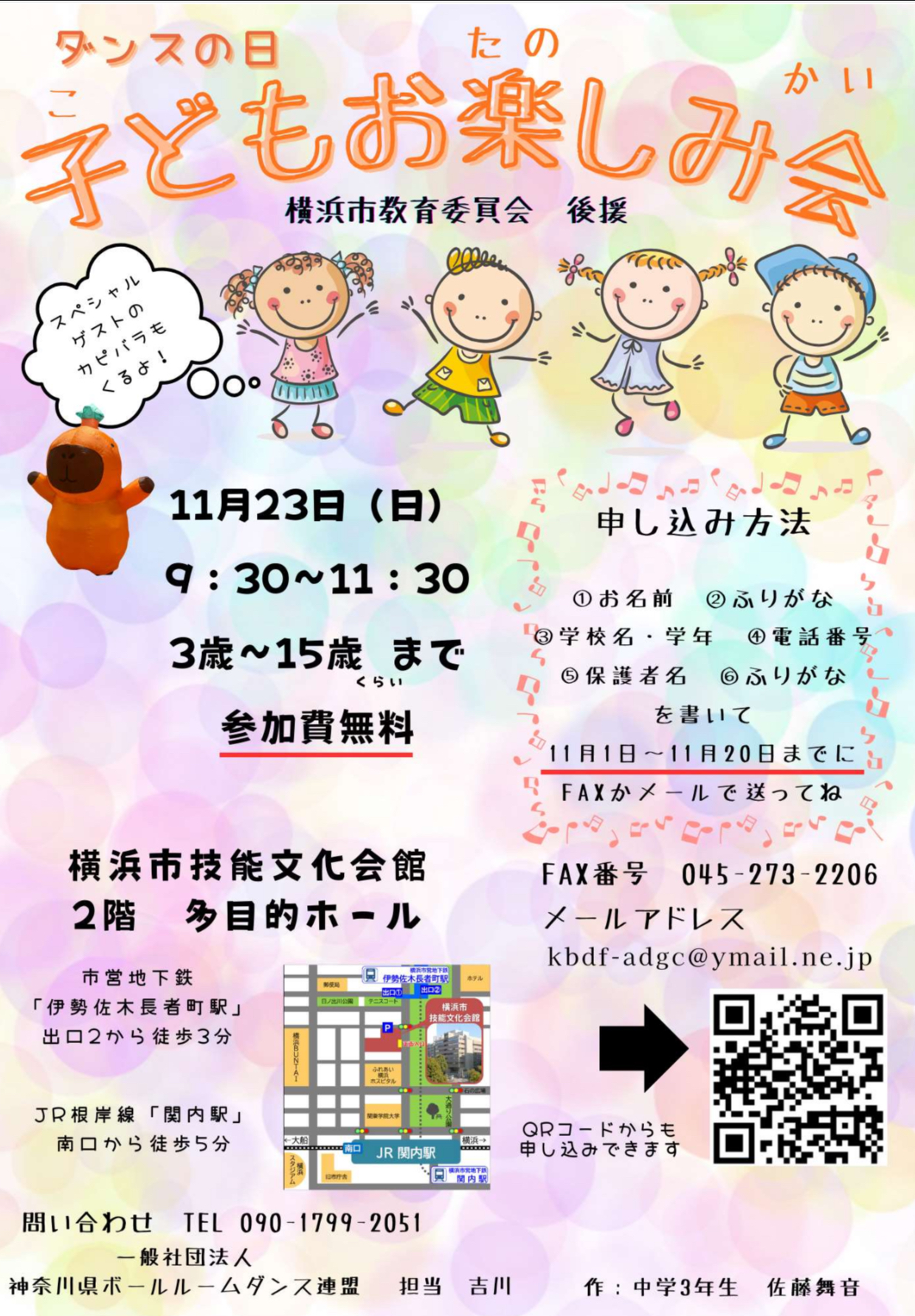 11/23に横浜市技能文化会館で開催される 子どもお楽しみ会のご案内を掲載しました ご参加、お待ちしております