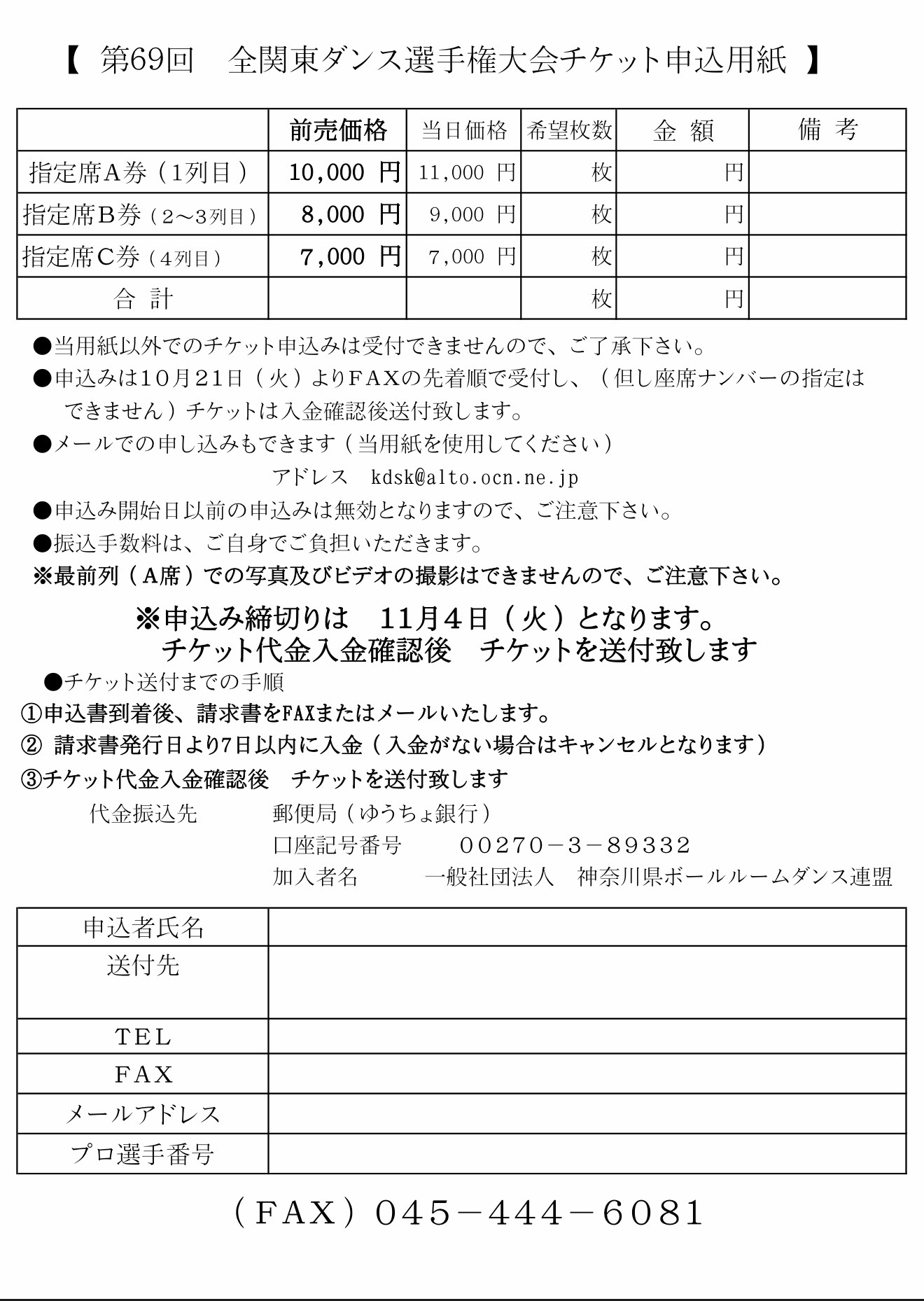 2025 11/30に大さん橋ホールで開催の全関東選手権観戦チケットの申し込み用紙をアップします メールかFaxにてお申し込みください